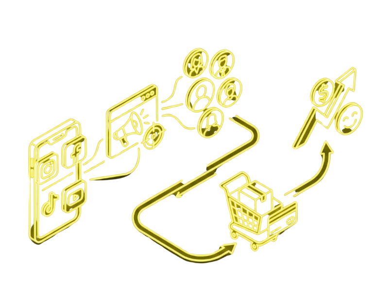 Reach consumers where they spend their time—scrolling feeds, watching videos, discovering products. Performance-optimized social advertising across Meta, TikTok, Pinterest, YouTube, and Snapchat driving brand awareness, engagement, and direct conversions. Full-funnel campaigns from cold audience prospecting to retargeting and retention maximizing customer lifetime value. Creative-first strategies combining data science with thumb-stopping content that converts browsers into buyers.